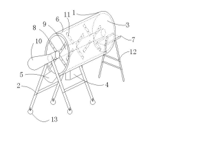 2.根据权利要求1所述的一种土壤筛分装置,其特征在于 :所述滚筒筛内设置有搅 拌架,搅拌架被支撑架支撑,搅拌架通过搅拌轴与土壤箱外的电机 相连接。
